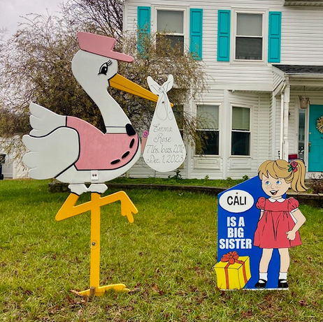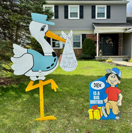 Our birth announcements have been the standard for over 34 years. In fact, in this area, we originated the concept. Nothing else comes close to a Stork News style stork or our New Kidd on the Bloxx birth announcement. These are often imitated but never duplicated. Our keepsake bundle sign is recognized by generations as a memory that the stork once visited.